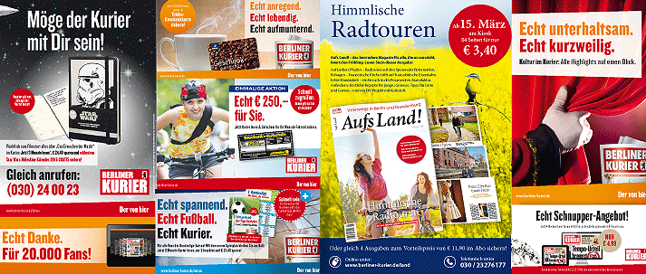 www.berliner-kurier.deProduktwerbung: Anzeigen, Flyer, Online-Grafiken mit wechselnden Content für den Lesermarkt und das Abomarketing.