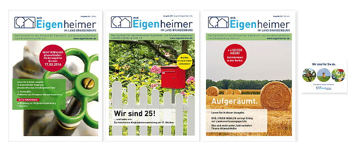 www.eigenheimer.deGestaltung und Layout der 2-monatlich erscheinenden Fachzeitung für den Verband der Eigenheimer- und Grundstücksbesitzer in Brandenburg.